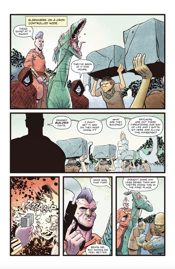 A 4-issue sci-fi epic in the vein of Heavy Metal, Dune, and Star Wars, yFu follows the story of Andre the Patcher (a planetary cyber-empath), and a young farmer named Eston'ya on the desolate world of Markap as they encounter the "yFu" goddesses - caretakers of the Yearning Tree, who may hold the key to restoring abundance to the universe, and wrench it from the clutches of the ancient, evil Cron.